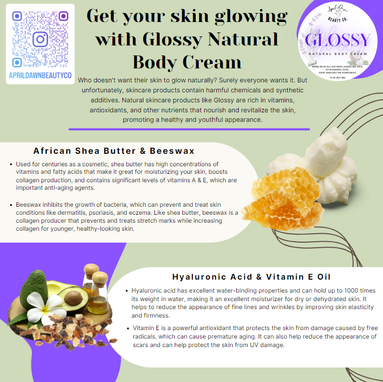 GLOSSY Natural Body Cream, Long-Lasting Eczema Relief and Skin Nourishment, 8oz